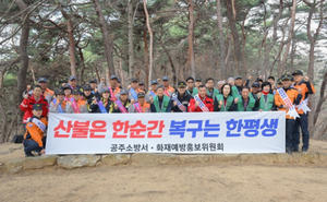 [충남타임즈] 공주시는 지난 3일 마곡사와 태화산 일대에서 봄철 산불 예방을 위한 합동 캠페인을 실시했다고 밝혔다. 공주소방서 주관으로 열린 이날 캠페인은 건조한 날씨와 청명·한식 기간에 따른 산불 위험을 줄이기 위해 마련됐다.이날 행사에는 최원철 시장을 비롯해 송희경 공주소방서장, 김동하 화재예방홍보위원회장, 의용소방대원 등 50여 명이 참여했다.참가자들은 등산객과 관광객을 대상으로 ▲산불 예방 전단지 배포 ▲논·밭두렁 및 쓰레기 소각 금지 홍보 ▲흡연 및 화기 사용 자제 요청 ▲산불 발생 시 대처 요령 안내 등 다양한 예방 활동