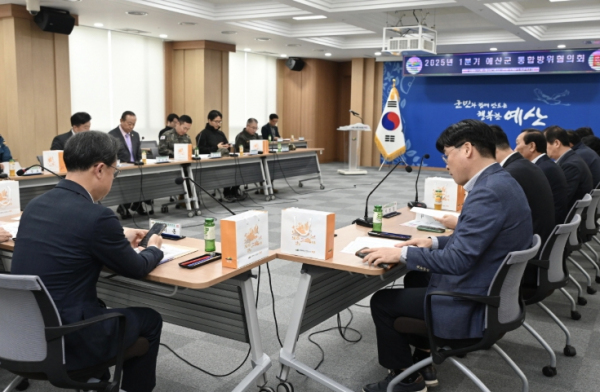 [충남타임즈] 예산군 통합방위협의회는 지난 27일 군청 대회의실에서 최재구 군수와 통합방위협의회 위원 20여명이 참석한 가운데 ‘2025년 1분기 예산군통합방위협의회’를 개최했다.