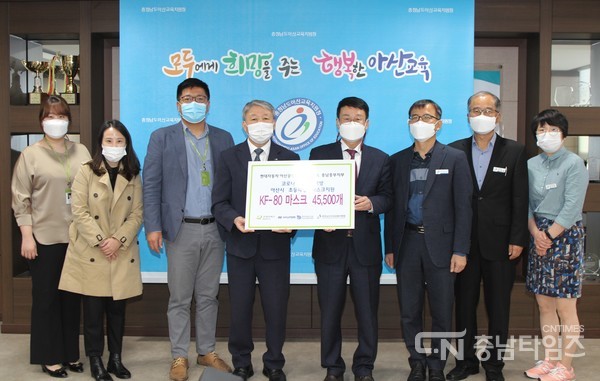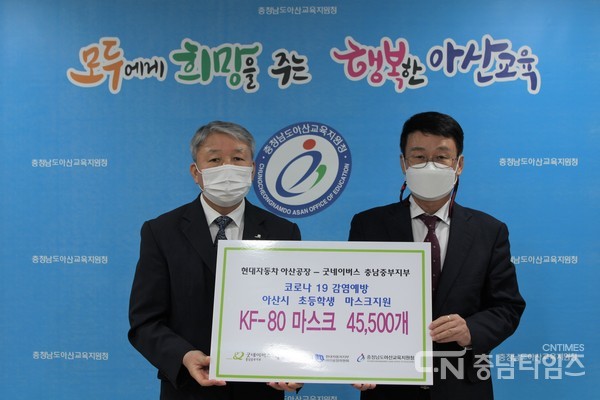 충청남도아산교육지원청(교육장 이문희) 관내 초등학교에 굿네이버스에서 아산현대자동차의 후원을 받아 45,500장의 마스크를 지원 받았다.