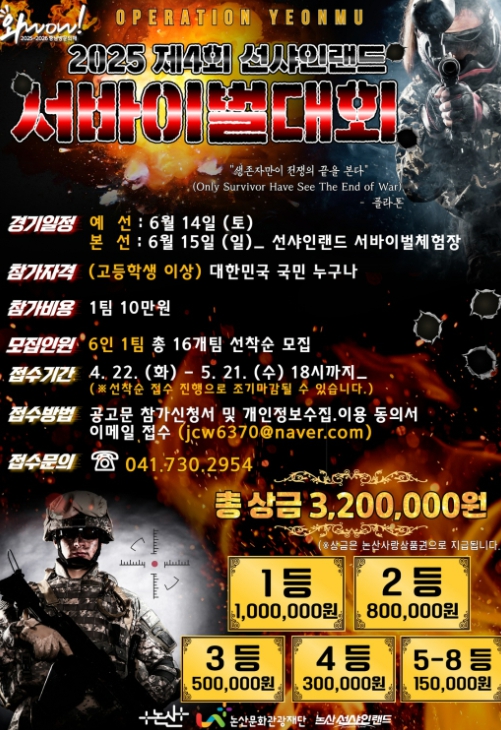 [충남타임즈] (재)논산문화관광재단가 ‘2025 제4회 논산 선샤인랜드 서바이벌대회 참가자를 모집한다고.